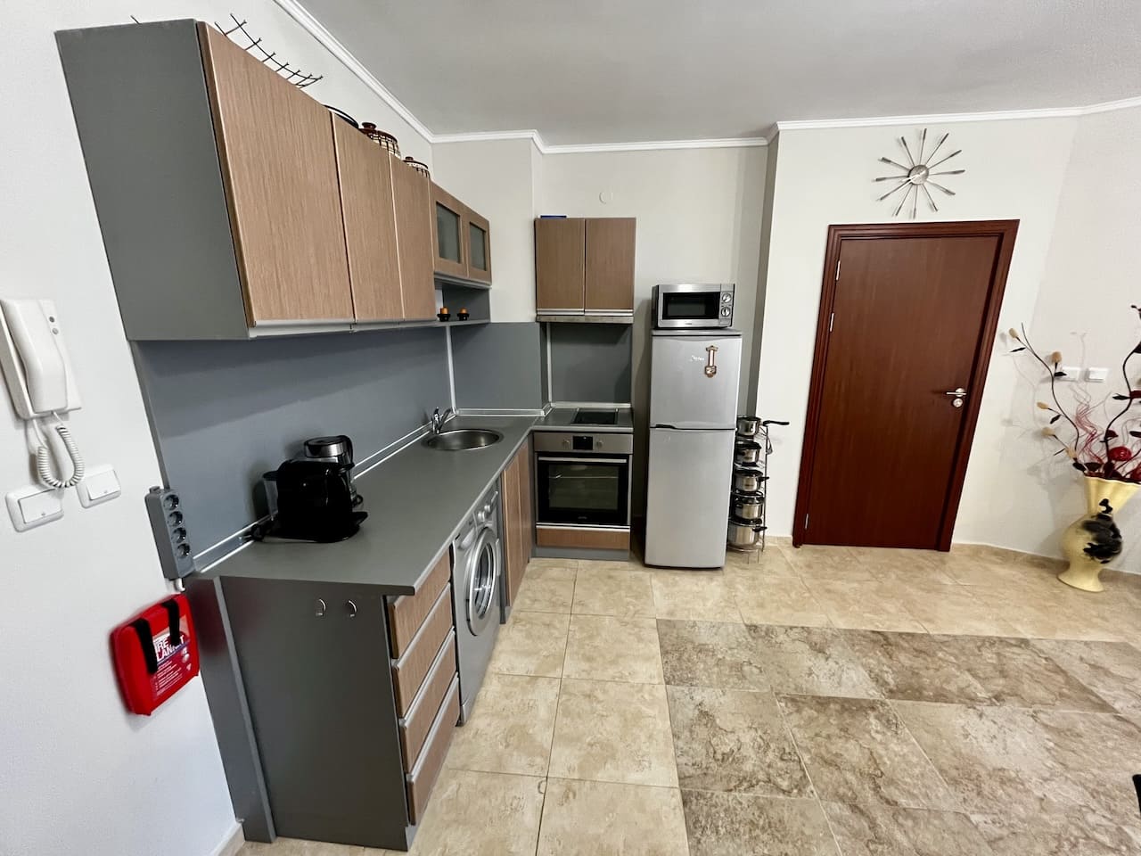 Летом здесь живо, но без перегруженности крупных курортов. В межсезонье район остаётся обитаемым — работают магазины, кафе, транспорт. В 300 метрах находится аквапарк, а всего в 3 км — Солнечный берег. До аэропорта Бургас — 24 км.
