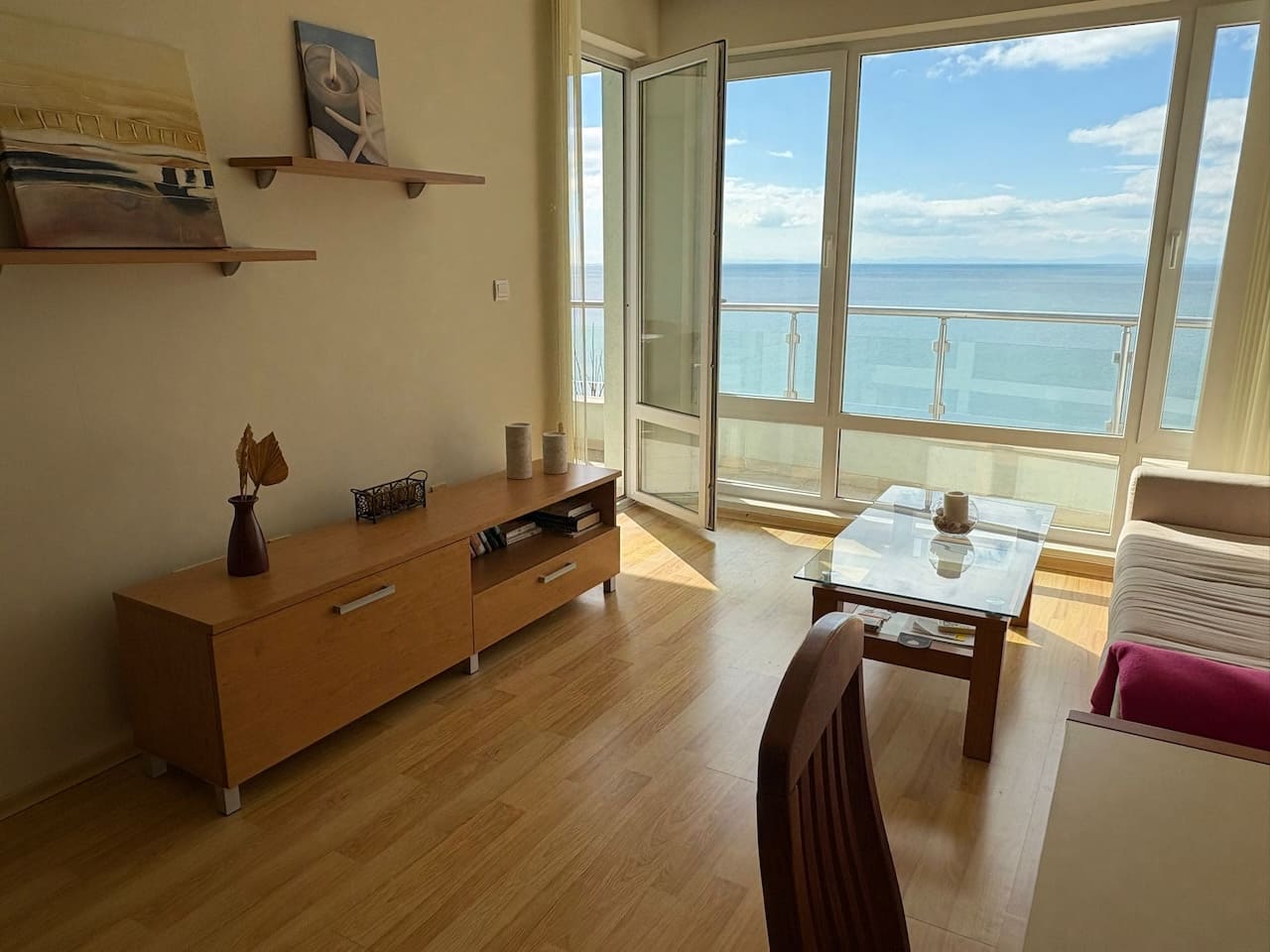 Апартамент расположен в комплексе «Алекс Бич» в Святом Власе. На территории предусмотрены бассейн 🏊, детская зона, бар у бассейна, частный пляж, зоны отдыха и пристань.