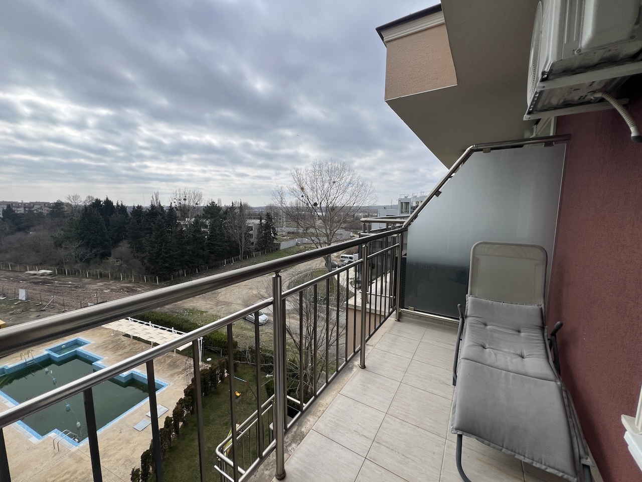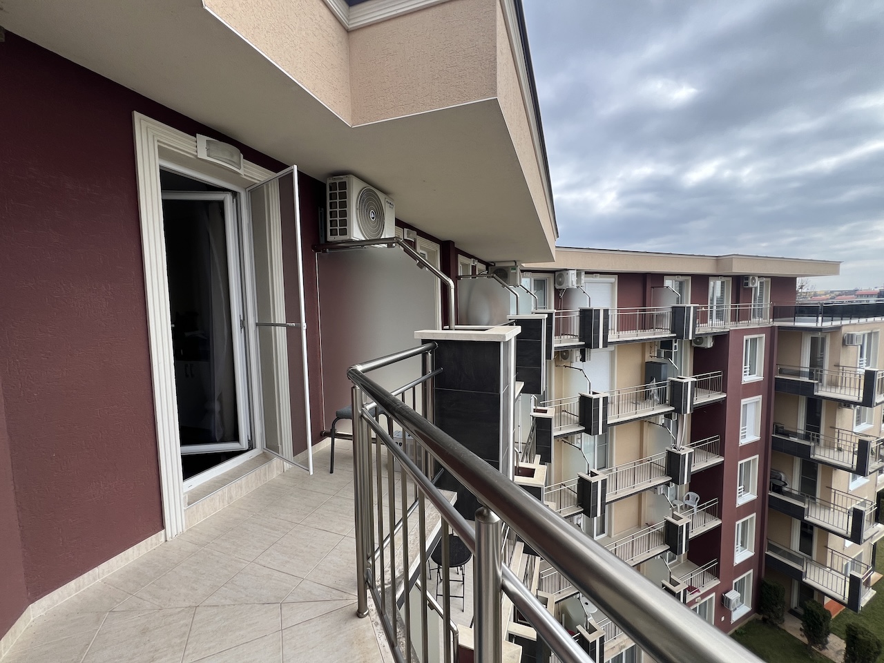 Двухуровневая квартира типа мезонет расположена на пятом и шестом этажах жилого комплекса VIP Vision на курорте Солнечный берег. До одного из самых известных пляжей курорта — Какао Бич — около 600 метров.