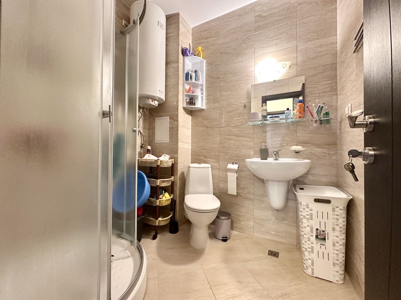 Санузел совмещённый, оборудован душевой кабиной, бойлером и современной сантехникой.