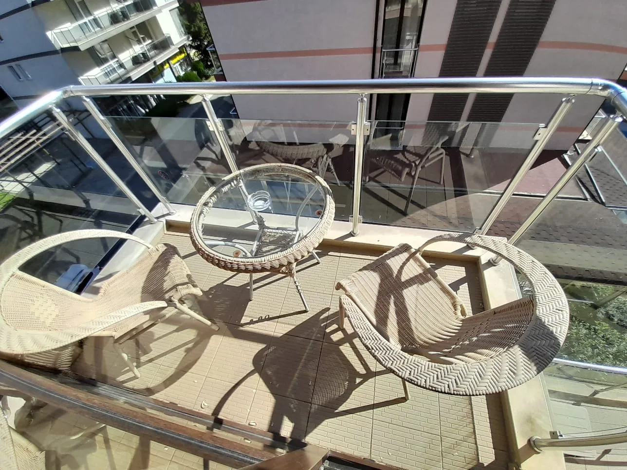 🌿 Выход на террасу — из основной комнаты. С неё открывается вид на внутреннюю территорию комплекса и частичный обзор бассейна.