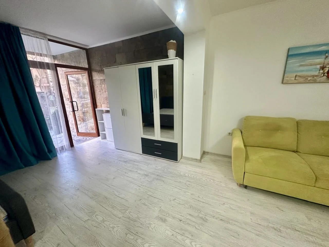 Просторная, полностью меблированная квартира-студия в Равда (Болгария) площадью 51 м² с большой открытой террасой и прямым выходом к бассейну.